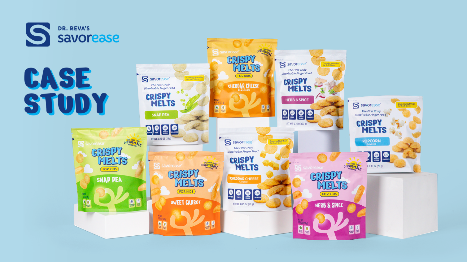 Savorease as a brand had somewhat defined their strategy but lacked the expertise to execute it properly on a visual levels. Dr. Reva, its founder and Crispy Meltsā creator, was looking for a redesign of their packaging (for both adults and pediatric versions) as well as high quality content for their website.